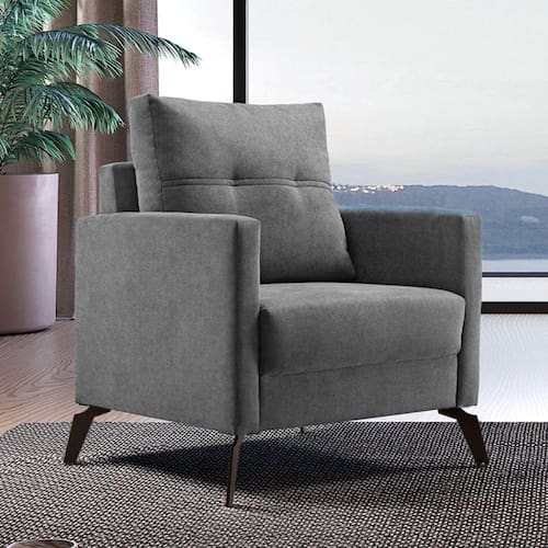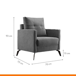 Poltrona com assento de espuma, revestido com manta acrílica. O encosto contém uma almofada preechida com fibra siliconada e manta acrílica, proporcionando conforto. Seu pés são de metal, proporcionando modernidade para o design. Acompanha Almofadas extras: Não Acompanha Puff: Não Almofada do assento: Fixa Almofada do encosto: Removível Altura do assento até o chão: 45 Altura do Encosto: 50 Altura dos Pés: 15 Ambiente Principal: Sala de Estar Complexidade da Montagem: Baixa: pode ser montado por uma pessoa sozinha Cor: Grafite Cor do Produto: Grafite Design Assinado: Não Enchimento do Assento: Espuma D-28 Enchimento do Braço: Espuma D-26 Enchimento do Encosto: Fibra Siliconada Encosto para a Cabeça: Não Estampado: Não Extensível: Não Firmeza do Assento: Macio Itens Inclusos: 1 Poltrona, Kit Ferragens e Manual de Montagem Material do Braço: Estrutura de madeira revestido com espuma e manta acrílica Material dos Pés: Metal Modelo de Poltrona: Fixo Necessita Montagem: Sim Origem do Produto: Nacional Peso: 15.5 Possui Percintas Elásticas: Não Possui Pés: 04 Possui Rodízio: Não Recomendações de Uso, Manutenção e Limpeza: A limpeza do revestimento deve ser feita com escova ou tecido de algodão branco levemente umedecidos em água morna, sabão neutro ou produto específico. Não usar produtos corrosivos nem a base de solventes, como: cloro, alvejantes, detergentes, entre outros;Não expor o estofado à luz direta. Mantenha portas e janelas sempre protegidas com cortinas e blackout. A exposição contínua à radiação da luz, danifica o revestimento, apodrecendo os fios, trincando a superfície e desbotando as cores;Não lavar o revestimento das almofadas pois pode desfiá-las, abrindo as costuras;Não utilizar o estofado para fins diferentes do que foi projetado: ficar em pé, pular, arrastar, sentar nos braços, peso na caixa traseira, entre outros tipos de ações que poderão danificar o produto. Resistente à Chuva: Não Sistema de Montagem: Parafusos Suporta Até (kg): 120 Tecido Predominante: Veludo Tipo de Assento: Fixo Tipo de Encosto: Fixo Tipo de Espuma do Assento: Soft Tipo de Poltrona: Decorativa Ean: 7909903374870