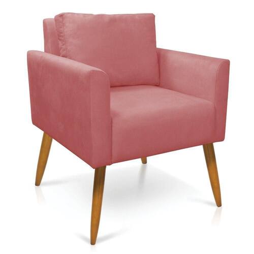 Que tal adicionar um pouco de cor ao seu ambiente? Temos essa linda Poltrona Aline no tom Rosê, ela é um item indispensável na elaboração de uma boa decoração. Perfeita para relaxar, não importa onde for colocada, fica linda no hall de entrada, em volta de uma mesinha de centro na sala de estar, como apoio no quarto ou acomodação extra em escritório. Sem dúvida, ela irá transformar seu espaço em um lugar super harmonioso e moderno. Sua estrutura é confeccionada em madeira de eucalipto proveniente de reflorestamento, o estofamento do assento/encosto é composto de espuma prorelax D-23, revestido em Suede, um tecido aconchegante, resistente e extremamente luxuoso. Sua sustentação é dada pelos tradicionais pés palito castanho. E para complementar ainda mais esta peça, contém uma almofada do mesmo tom do tecido da poltrona, agregando um toque charmoso e lindo à mobília. Curtiu a nossa poltrona? Aqui você encontra uma variedade de cores, para renovar seu cômodo gastando pouco. Garanta já sua Poltrona Aline!