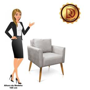 Poltrona Aline Veludo Pés Palito Castanho - D`rossi Cor Cinza - Blush