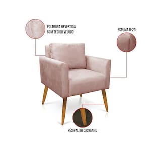 Que tal adicionar um pouco de cor ao seu ambiente? Temos essa linda Poltrona Aline no tom Rosê, ela é um item indispensável na elaboração de uma boa decoração. Perfeita para relaxar, não importa onde for colocada, fica linda no hall de entrada, em volta de uma mesinha de centro na sala de estar, como apoio no quarto ou acomodação extra em escritório. Sem dúvida, ela irá transformar seu espaço em um lugar super harmonioso e moderno. Sua estrutura é confeccionada em madeira de eucalipto proveniente de reflorestamento, o estofamento do assento/encosto é composto de espuma prorelax D-23, revestido em Veludo, um tecido aconchegante, resistente e extremamente luxuoso. Sua sustentação é dada pelos tradicionais pés palito castanho. E para complementar ainda mais esta peça, contém uma almofada do mesmo tom do tecido da poltrona, agregando um toque charmoso e lindo à mobília. Curtiu a nossa poltrona? Aqui você encontra uma variedade de cores, para renovar seu cômodo gastando pouco. Garanta já sua Poltrona Aline!