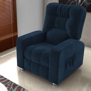 COMPRIMENTO DO PRODUTO (CM): 85 | DESCRIÇÃO DO TAMANHO: 105x85x85 cm | NOME DO PRODUTO NO FORNECEDOR: Poltrona Eletrica | PESO PRODUTO COM EMBALAGEM (KG): 40 | ALTURA DO PRODUTO COM EMBALAGEM (CM): 77 | MATERIAL PRINCIPAL: Veludo | ALTURA DO PRODUTO (CM): 105 | LARGURA DO PRODUTO (CM): 82 | CONTEÚDO DA EMBALAGEM: 1 Poltrona | LARGURA PRODUTO COM EMBALAGEM (CM): 84 | INSTRUÇÕES/CUIDADOS: Limpar com pano macio e seco, não utilizar produtos abrasivos | COMPRIMENTO PRODUTO COM EMBALAGEM (CM): 84 | CORES DO PRODUTO (FILTRO DE CORES): Azul | CÔMODO INDICADO: Sala | COM ALTURA AJUSTÁVEL: Sim | COM APOIO DE BRAÇOS: Sim | COM RODAS: Não | COM ENCOSTO RECLINÁVEL: Sim | É GIRATÓRIA: Não | PESO MÁXIMO SUPORTADO: 110 | TIPO DE CADEIRA: Poltrona | QUANTIDADES DE CAIXAS DE EMBALAGEM: 1 | MATERIAL PARA FILTRO: Veludo | MARCA: CasaH | PESO DO PRODUTO (KG): 40 | PRODUTO: Poltrona | PRODUTO PRECISA DE MONTAGEM?: Sugerimos a contratação de um montador para a montagem do produto. Não nos responsabilizamos por causadas no ato da montagem. | COR PREDOMINANTE: Azul | ESTADO DE ORIGEM: PR