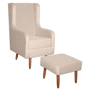 Poltrona Amamentação Ambiente Aquila com Puff Veludo Off Pés Palito - Fratello