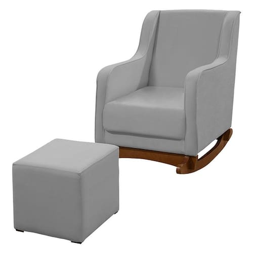 Poltrona Amamentação Aquila Plus com Puff Veludo Cinza - Fratello