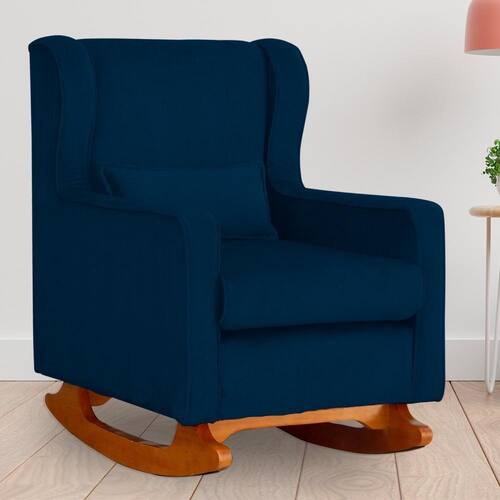 Poltrona Amamentação Balanço Aurora Suede Azul Marinho - LM DECOR