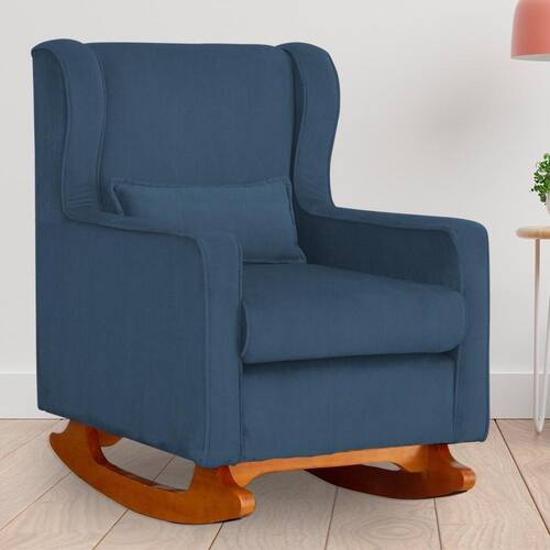 Poltrona Amamentação Balanço Aurora Suede Azul Royal - LM DECOR