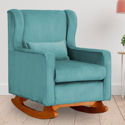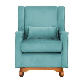 Poltrona Amamentação Balanço Aurora Veludo Azul Turquesa - LM DECOR