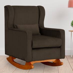 Poltrona Amamentação Balanço Aurora Veludo Marrom - LM DECOR