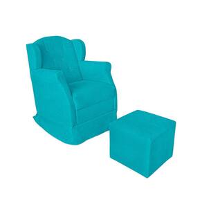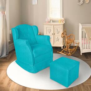Poltrona Amamentação Balanço Bege + Puff - Azul Turquesa