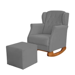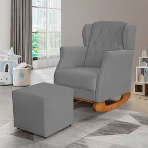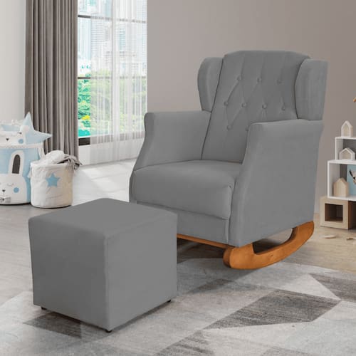 Poltrona Amamentação Balanço Descanso Helena Com Puff Suede - Cinza