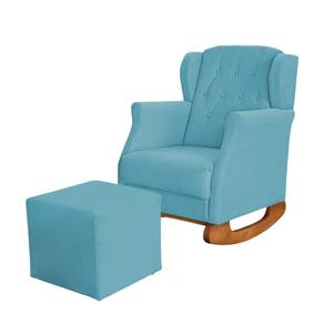 Poltrona Amamentação Balanço Descanso Helena Com Puff Suede - Azul