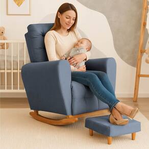 A Poltrona de Balanço são feitas com materiais de alta qualidade, estrutura em madeira de eucalipto, o tecido Suede macio e resistente, e a espuma D26 a densidade ideal para o seu conforto, base em madeira com um lindo design e balanço suave, que ajuda a relaxar e a embalar o sono do seu bebê. Além disso, A Poltrona possui um design moderno e sofisticado, com detalhes No encosto, que dão um toque de charme e elegância ao ambiente.
