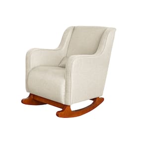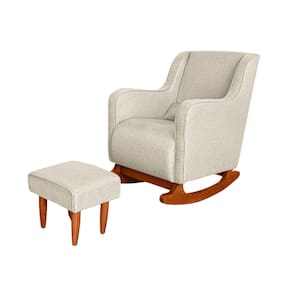 Poltrona Amamentação C / Balanço Cadeira Descanso Aquila Com Puff Linho - Bege