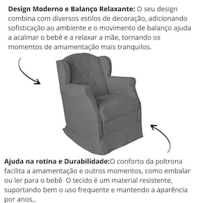 Poltrona Amamentação Cadeira Reforçada Balanço Lile Suede Cor:cinza