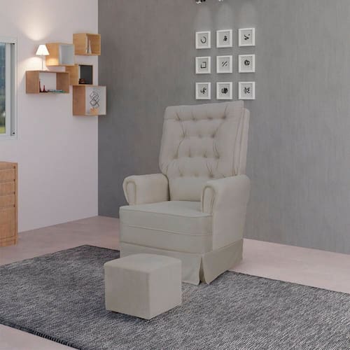 As imagens são meramente ilustrativas, não serão enviados objetos de decoração, eletrônicos e demais itens que não estejam especificados nos itens inclusos. Acompanha Almofadas extras: Não Acompanha Puff: Sim Almofada do assento: Não Possui Almofada do encosto: Fixa Altura do assento até o chão: 45 cm Altura do Encosto: 71 cm Ambiente Principal: Quarto Infantil Cor: Capuccino Cor do Produto: Capuccino Design Assinado: Não Enchimento do Braço: Espuma D-23 Enchimento do Encosto: Fibra Siliconada Encosto para a Cabeça: Não Estampado: Não Extensível: Não Itens Inclusos: Puff Linha ou Coleção: Eloa Material do Braço: Madeira revestida de espuma e tecido Modelo de Poltrona: Balanço Necessita Montagem: Não Origem do Produto: Nacional Peso: 28 kg Possui Percintas Elásticas: Sim Possui Pés: Não Recomendações de Uso, Manutenção e Limpeza: Limpar com um pano levemente umidecido Suporta Até (kg): 100 kg Tecido Predominante: Boucle Tipo de Assento: Fixo Tipo de Encosto: Fixo Tipo de Espuma do Encosto: Fibra Siliconada Tipo de Poltrona: Amamentação