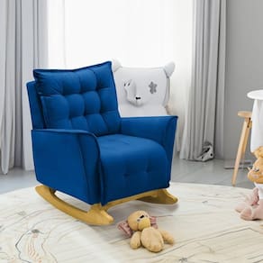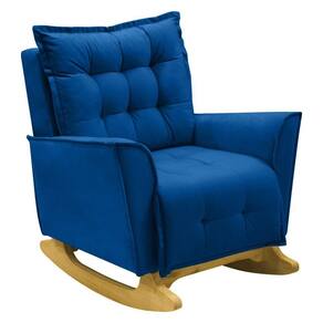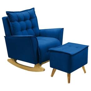Poltrona Amamentação De Balanço Helena + Puff Veludo Quarto Azul Marinho