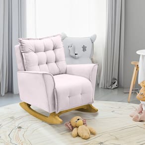 Poltrona Amamentação De Balanço Helena Veludo Quarto Bebê Rosê