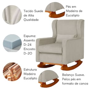 Poltrona com Movimento de Balanço – Estilo, Aconchego e Versatilidade para Seu Lar! A Poltrona Maju é o toque de carinho que faltava no seu ambiente. Com design elegante e moderno, estrutura reforçada e pés de balanço em madeira, ela transforma qualquer espaço em um refúgio de conforto e beleza. Perfeita para Amamentar, Descansar ou Relaxar. Seja no quarto do bebê, na sala ou no cantinho da leitura, essa poltrona é ideal para quem valoriza aconchego com estilo. O movimento de balanço suave ajuda acalmar seu bebê e também relaxa o corpo após um longo dia. A Maju se adapta com facilidade, proporcionando um toque de elegância e bem-estar em qualquer espaço. Compre já a Poltrona de Amamentação e Descanso para renovar seu ambiente com mais conforto, beleza e funcionalidade. Ideal para quem deseja uma poltrona estofada elegante com acabamento de alto padrão! Destaques do produto: Design curvado e sofisticadoBase de madeira com acabamento impecávelTecido macio e elegante – fácil de combinar com diversos estilosEstrutura em eucalipto reflorestado – resistente e sustentável Suporta até 190 kg Fabricada em Suede de alta qualidade Dimensões: Altura: 91 cm Largura: 68 cm Profundidade: 65 cm Largura Assento: 50 cm Profundidade assento: 61 cm Altura do Encosto: 46 cm Peso: 20 kg Volume:01 Cuidados e limpeza: Limpar com pano levemente umedecido, seguido de pano seco Evite exposição direta ao sol para preservar a cor do tecido Não utilizar escovas ou produtos abrasivos Observações Relevantes: - As imagens são meramente ilustrativas, não acompanham objetos de decoração e eletros; - Pode haver alguma diferença de tonalidade entre a imagem e o produto real, por conta do tratamento de imagens e o lote de tecido utilizado na fabricação. Poltrona de amamentação Poltrona para amamentação Poltrona de amamentação simples Poltrona de amamentação bebê Poltrona amamentação balanço Poltrona descanso Poltrona de balanço Poltrona para sala Poltrona sofá cadeira de amamentaçãoPoltronas decorativas Poltrona de leitura Poltrona confortável Cadeira de sala de jantar Cadeira de jantar Poltrona com braço Poltrona madeira reforçada Poltrona base em madeira Poltrona com madeira maciça Poltrona para sala e quarto Poltrona para quarto Poltrona de sala Poltrona estilo clean Poltrona minimalista Poltrona para descanso Poltrona retrô Poltrona cadeira Poltrona sofisticada Poltrona de amamentação Poltrona do papai Poltrona reclinável Poltrona massageadora Poltrona inflavel Poltrona cama dobrável Poltrona que vira cama