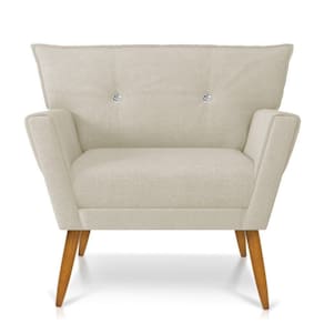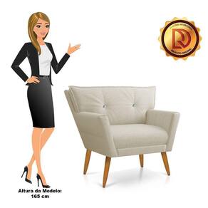 Poltrona Anitta Linho Grosso Bege A19 Com Strass Pés Palito Castanho - D'rossi