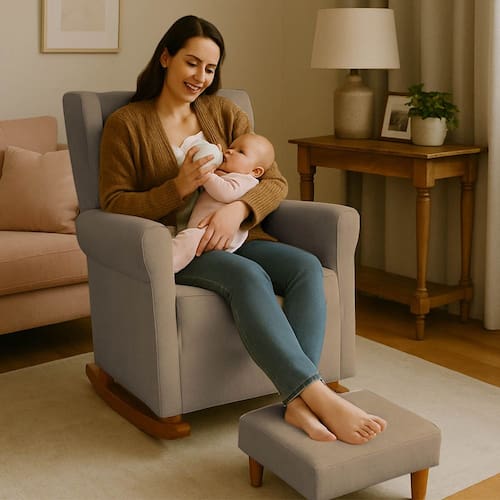 Poltrona para Amamentação em Suede Balanço e Puff Baby