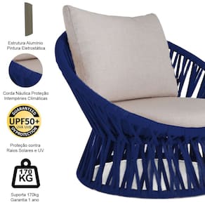 OBS: POR SE TRATAR DE UM PRODUTO ARTESANAL SUAS MEDIDAS PODEM CONTER PEQUENAS VARIAÇÕES. Fotos meramente ilustrativas. Tonalidades podem variar dependendo do monitor. Os objetos que ambientam as fotos não acompanham o produto. Antes de comprar o seu produtos verifique as medidas, o local onde pretende instalar e se necessário contratar o serviço de um profissional qualificado. Produto conhecido como: Poltrona Monza, Poltrona Monza de alumínio, Corda náutica, Estofado impermeável, Móveis de exterior, Poltrona Monza resistente à água, Design moderno em poltrona para área externa, poltrona de jardim, móveis para varanda, poltrona durável, poltrona de alta qualidade, conforto em poltrona, sofá elegante.