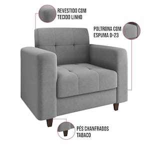 A Poltrona Arezzo é um móvel extremamente luxuoso, perfeito para compor a composição da sua décor. Mesmo com essa versatilidade e facilidade de combinar com outros elementos do cômodo, ela ainda sim, consegue ser o grande destaque do ambiente. Com um design moderno, elegante e de linhas retas, perfeita para quem busca uma proposta mais sofisticada para a sala de estar. Esta peça ainda traz uma cor extremamente impactante, deixando o móvel com um estilo ainda mais refinado. Produzida com materiais de máxima qualidade, começando pela estrutura em madeira de reflorestamento, afinal, acreditamos que podemos oferecer peças lindas sem prejudicar o meio ambiente. Possui percintas elásticas e pés chanfrados tabaco, que garantem durabilidade e alta resistência. Conta com estofamento em espuma de alta densidade D-23, revestimento em Fibra siliconada no tecido Linho, um material com um aspecto aveludado, macio e resistente. Vale a pena lembrar que antes de ser escolhido o modelo ideal, é importante sempre levar em consideração o tecido, se são anti-ácaros e anti- alérgicos. Afinal, só quem tem alergia sabe o incômodo que é, não é mesmo!? Portanto, se você é uma pessoa que tem a pele mais sensível a certos tipos de tecidos, aqui você não precisa ter medo de investir em nossa Poltrona! Nossos produtos são pensados e desenvolvidos com muito carinho, preservando seu conforto e sua saúde. Demais né!? Invista sem medo e garanta a sua!