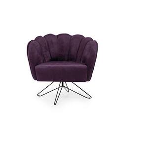 poltrona ariel base aço veludo uva e preta - Roxo