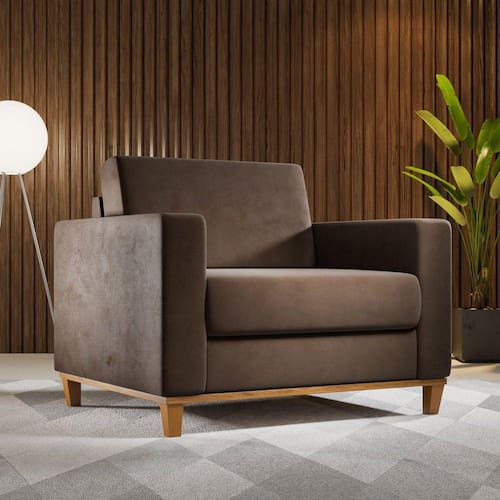 Seu lar merece um cantinho de descanso e entretenimento completo, onde não só a TV seja o destaque. Para isso, aposte em um móvel onde você possa passar bons momentos, seja relaxando ou curtindo seus programas favoritos: a Poltrona Livia. Acompanha Almofadas extras: Não Acompanha Puff: Não Almofada do assento: Fixa Almofada do encosto: Fixa Altura do assento até o chão: 41 Altura do Encosto: 35 Altura dos Pés: 13 Ambiente Principal: Sala de Estar Complexidade da Montagem: Baixa: pode ser montado por uma pessoa sozinha Cor: Bombom Cor do Produto: Bombom Design Assinado: Não Enchimento do Assento: Espuma D-20 Enchimento do Braço: Espuma D-16 Enchimento do Encosto: Espuma D-16 Encosto para a Cabeça: Não Estampado: Não Extensível: Não Firmeza do Assento: Firme Itens Inclusos: 1 Poltrona, Kit Ferragens e Manual de Montagem Manual de Especificação Técnica: https://product-hub-prd.madeiramadeira.com.br/800157/documents/c6fdf5bf-e24e-46c2-b21a-7eefdb48a0b1867esptEcnicapoltronalivia.pdf Manual de Montagem e Instalação: https://product-hub-prd.madeiramadeira.com.br/800157/documents/8a3c0901-88f9-41f9-80b3-9c821dd598f01057442poltronalivia.pdf Material do Braço: MDP/espuma Material dos Pés: Eucalipto Modelo de Poltrona: Fixo Necessita Montagem: Sim Origem do Produto: Nacional Peso: 20 Possui Percintas Elásticas: Sim Possui Pés: 04 Possui Rodízio: Não Recomendações de Uso, Manutenção e Limpeza: Limpar com pano levemente umedecido com água Sistema de Montagem: Parafusos Suporta Até (kg): 110 Tecido Predominante: Veludo Tipo de Assento: Fixo Tipo de Encosto: Fixo Tipo de Espuma do Assento: Espuma Convencional Tipo de Espuma do Encosto: Espuma Convencional Tipo de Poltrona: Leitura Ean: 7909903139875