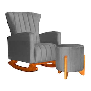 Poltrona Balanço C/ Puff Melinda Suede Cinza - LM DECOR
