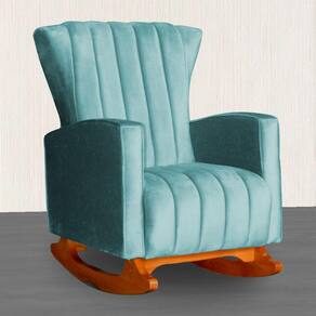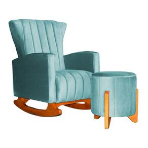 Poltrona Balanço C/ Puff Melinda Veludo Azul Turquesa - LM DECOR