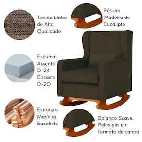 Perfeita para Amamentar, Descansar ou Relaxar. Seja no quarto do bebê, na sala ou no cantinho da leitura, essa poltrona é ideal para quem valoriza aconchego com estilo. O movimento de balanço suave ajuda acalmar seu bebê e também relaxa o corpo após um longo dia. A Valentina se adapta com facilidade, proporcionando um toque de elegância e bem-estar em qualquer espaço.
