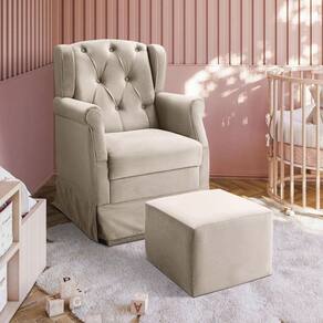 Poltrona Balanço Ternura + Puff Em Corano - Star Confort Bege A poltrona amamentacao, proporciona todo o conforto e aconchego que a familia precisa nesta fase tao especial, e encanta pelo seu estilo sofisticado. Feita com materia-prima de alta qualidade a poltrona possui estofado revestido por tecido de toque suave que proporciona aconchego para os momentos de amamentacao. A poltrona possui um balanco suave em sua base, e um encosto alto com espuma de excelente densidade e estrutura solida de madeira. Caracteristicas: Estrutura: fabricado com Madeira Eucalipto Reflorestada, e alguns detalhes em MDF; Assento: Espuma D23; Encosto: Espuma D12; Braco: Espuma D14; Base/Pes: Madeira Eucalipto Reflorestada; Peso Suportado: 110 Kg; Necessita de Montagem: Nao