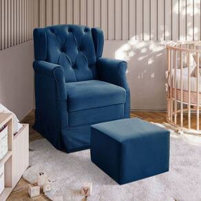 Poltrona Balanço Ternura + Puff Em Veludo - Star Confort Azul A poltrona amamentacao, proporciona todo o conforto e aconchego que a familia precisa nesta fase tao especial, e encanta pelo seu estilo sofisticado. Feita com materia-prima de alta qualidade a poltrona possui estofado revestido por tecido de toque suave que proporciona aconchego para os momentos de amamentacao. A poltrona possui um balanco suave em sua base, e um encosto alto com espuma de excelente densidade e estrutura solida de madeira. Caracteristicas: Estrutura: fabricado com Madeira Eucalipto Reflorestada, e alguns detalhes em MDF; Assento: Espuma D23; Encosto: Espuma D12; Braco: Espuma D14; Base/Pes: Madeira Eucalipto Reflorestada; Peso Suportado: 110 Kg; Necessita de Montagem: Nao