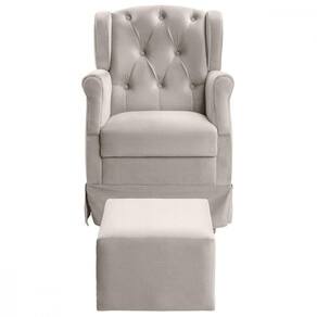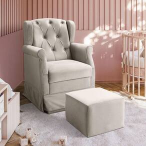 Poltrona Balanço Ternura + Puff Em Veludo - Star Confort Marfim A poltrona amamentacao, proporciona todo o conforto e aconchego que a familia precisa nesta fase tao especial, e encanta pelo seu estilo sofisticado. Feita com materia-prima de alta qualidade a poltrona possui estofado revestido por tecido de toque suave que proporciona aconchego para os momentos de amamentacao. A poltrona possui um balanco suave em sua base, e um encosto alto com espuma de excelente densidade e estrutura solida de madeira. Caracteristicas: Estrutura: fabricado com Madeira Eucalipto Reflorestada, e alguns detalhes em MDF; Assento: Espuma D23; Encosto: Espuma D12; Braco: Espuma D14; Base/Pes: Madeira Eucalipto Reflorestada; Peso Suportado: 110 Kg; Necessita de Montagem: Nao
