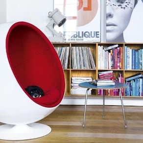 A Ball Chair, projetada por Eero Aarnio em 1963, é uma peça icônica do design moderno, reconhecida por sua forma distintiva e futurista. Também conhecida como Globe Chair, a poltrona foi concebida como um espaço íntimo e acolhedor dentro de um ambiente maior, oferecendo privacidade e conforto.