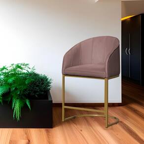 Poltrona Banqueta Decorativa Base Metal Mia Veludo Rose - LM DECOR - Rosê