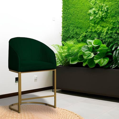 Poltrona Banqueta Decorativa Base Metal Mia Veludo Verde - LM DECOR