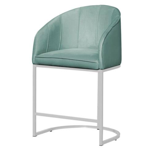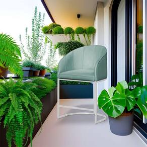 Poltrona Banqueta Veludo Mia Base Metal Branco - Estopar - Verde Claro