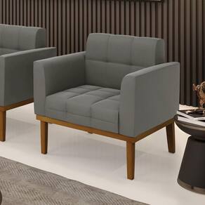 Poltrona Base De Madeira Fixa Castanho Elisa Suede D03 - D\\'rossi Cor Grafite