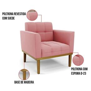 Poltrona Base De Madeira Fixa Castanho Elisa Suede Rosê D03 - D`rossi - Blush