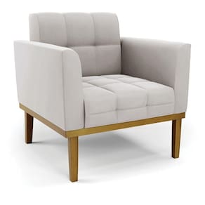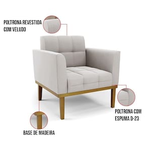 Poltrona Base De Madeira Fixa Castanho Elisa Veludo D03 - D'rossi Cor Cinza