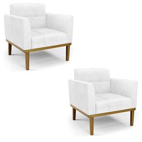 Poltrona Base De Madeira Fixa Castanho Kit 2 Elisa Corano D03 - D'rossi Cor Branco