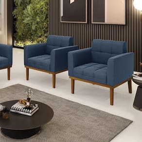 Você gosta de colecionar vários momentos memoráveis com sua família e amigos? Que tal recebê-los, com móveis de altíssima qualidade que só a DRossi tem? A Poltrona Elisa é adequada para você! Seu design retrô é a grande tendência do momento. Pode ser usada em diversos espaços da casa, em salas, hall de entrada, quartos, cozinhas, varanda, sacada, escritório, dentre outros. Contém as seguintes características: A estrutura é feita de madeira de Eucalipto 100% de reflorestamento, e a Base de Madeira Fixa Castanho, além de ser resistente e durável, suporta em média até 120 kg. Assento, encosto e braços, contém enchimento de espuma D-23 e é estofada em tecido Suede, que oferece muito conforto e resistência ao sentar, com aquela sensação de maciez e aconchego. Possui também, detalhes de costura no encosto e assento, resultando em um acabamento impecável, conferindo muito mais valor e elegância ao seu espaço. Para complementar a decoração com essa linda poltrona, a dica é utilizar mantas, almofadas ou vasinho de flor. E pronto, seu cantinho estará perfeito para descansar e relaxar! Aqui, você encontra várias opções, para que seus amigos e familiares se sintam acolhidos. Garanta já seu Kit 2 Poltronas. Dimensões da Poltrona: Altura total: 81 cm Largura total: 64 cm Profundidade total: 64 cm Altura do encosto: 36 cm Largura do assento: 47 cm Profundidade do assento: 48 cm Altura do chão ao assento: 45 cm Espessura do assento: 18 cm Tamanho dos pés: 30 cm Espessura do braço: 9 cm Peso: 18 kg Especificações do Produto Estrutura: Madeira Eucalipto Espuma: D-23 Tecido: Suede Tipo de pés: Base Madeira Fixa Castanho Peso suportado: Até 120 Kg Garantia: 90 dias contra defeito de fabricação Montagem: O produto vai montado, apenas parafusar a base Instruções de limpeza: Utilizar um pano limpo e levemente úmido Você irá receber: 02 Poltronas - Entregue em: 02 Volumes Observações Relevantes - Todos os produtos vão embalados com total segurança; - As cores dos produtos podem sofrer alterações dependendo do seu monitor; - Para futuras compras, não garantimos a mesma tonalidade de cor, pois existe variação a cada lote do fabricante do tecido; - As imagens são meramente ilustrativas, não acompanham objetos de decoração e eletros; - Confira as dimensões do produto no momento da compra e certifique-se de que passará normalmente por escadas, elevadores, portas e corredores; - Importante: Por se tratar de estofado as medidas podem ter uma pequena variação em até 3 cm; - Não nos responsabilizamos no ato da entrega por montagens, desmontagens, instalações de produtos; - Não nos responsabilizamos no ato da entrega por subir escadas, elevadores, nem utilização de guinchos ou equipamentos similares para acesso a pisos superiores em apartamentos; - A entrega do produto é realizada em todo território nacional, até onde as rodovias alcançam, entregas fluviais ou aéreas devem ser cotadas a parte; - Observando as orientações acima, evita-se futuros desagrados ou imprevistos com a entrega do produto. Havendo despesas adicionais, serão de responsabilidade do cliente;