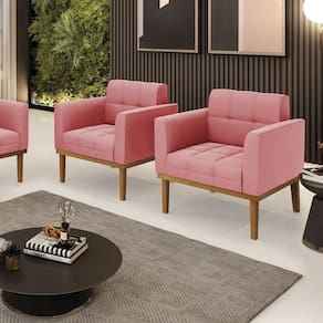 Poltrona Base De Madeira Fixa Castanho Kit 2 Elisa Suede D03 - D\\'rossi Cor Rose