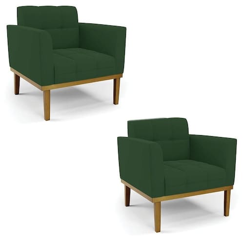 Você gosta de colecionar vários momentos memoráveis com sua família e amigos? Que tal recebê-los, com móveis de altíssima qualidade que só a D'Rossi tem? A Poltrona Elisa é adequada para você! Seu design retrô é a grande tendência do momento. Pode ser utilizada em diversos espaços da casa, em salas, hall de entrada, quartos, cozinhas, varanda, sacada, escritório, dentre outros. Contém as seguintes características: A estrutura é feita de madeira de Eucalipto 100% de reflorestamento, e a Base de Madeira Fixa Castanho, além de ser resistente e durável, suporta em média até 120 kg. Assento, encosto e braços, contém enchimento de espuma D-23 e é estofada em tecido Veludo, no tom Verde, que oferece muito conforto e resistência ao sentar, com aquela sensação de maciez e aconchego. Possui também, detalhes de costura no encosto e assento, resultando em um acabamento impecável, conferindo muito mais valor e elegância ao seu espaço. Para complementar a decoração com essa linda poltrona, a dica é utilizar mantas, almofadas ou vasinho de flor. E pronto, seu cantinho estará perfeito para descansar e relaxar! Aqui, você encontra várias opções, para que seus amigos e familiares se sintam acolhidos. Garanta já seu Kit 2 Poltronas..