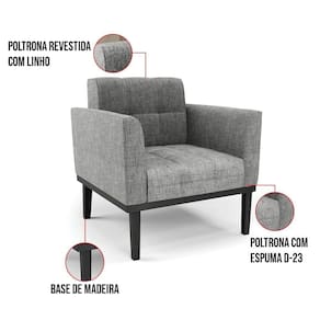 Poltrona Base De Madeira Fixa Preto Elisa Linho D03 - D'rossi Cor A26 Grafite