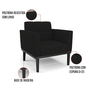 Você gosta de colecionar vários momentos memoráveis com sua família e amigos? Que tal recebê-los, com móveis de altíssima qualidade que só a D'Rossi tem? A Poltrona Elisa é adequada para você! Seu design retrô é a grande tendência do momento. Pode ser usada em diversos espaços da casa, em salas, hall de entrada, quartos, cozinhas, varanda, sacada, escritório, dentre outros. Contém as seguintes características: A estrutura é feita de madeira de Eucalipto 100% de reflorestamento, e a Base de Madeira Fixa Preto, além de ser resistente e durável, suporta em média até 120 kg. Assento, encosto e braços, contém enchimento de espuma D-23 e é estofada em tecido Linho, que oferece muito conforto e resistência ao sentar, com aquela sensação de maciez e aconchego. Possui também, detalhes de costura no encosto e assento, resultando em um acabamento impecável, conferindo muito mais valor e elegância ao seu espaço. Para complementar a decoração com essa linda poltrona, a dica é utilizar mantas, almofadas ou vasinho de flor. E pronto, seu cantinho estará perfeito para descansar e relaxar! Aqui, você encontra várias opções, para que seus amigos e familiares se sintam acolhidos. Garanta já sua Poltrona.