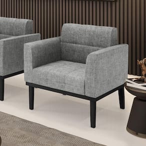 Você gosta de colecionar vários momentos memoráveis com sua família e amigos? Que tal recebê-los, com móveis de altíssima qualidade que só a D'Rossi tem? A Poltrona Elisa é adequada para você! Seu design retrô é a grande tendência do momento. Pode ser usada em diversos espaços da casa, em salas, hall de entrada, quartos, cozinhas, varanda, sacada, escritório, dentre outros. Contém as seguintes características: A estrutura é feita de madeira de Eucalipto 100% de reflorestamento, e a Base de Madeira Fixa Preto, além de ser resistente e durável, suporta em média até 120 kg. Assento, encosto e braços, contém enchimento de espuma D-23 e é estofada em tecido Linho no tom Grafite, que oferece muito conforto e resistência ao sentar, com aquela sensação de maciez e aconchego. Possui também, detalhes de costura no encosto e assento, resultando em um acabamento impecável, conferindo muito mais valor e elegância ao seu espaço. Para complementar a decoração com essa linda poltrona, a dica é utilizar mantas, almofadas ou vasinho de flor. E pronto, seu cantinho estará perfeito para descansar e relaxar! Aqui, você encontra várias opções, para que seus amigos e familiares se sintam acolhidos. Garanta já sua Poltrona.