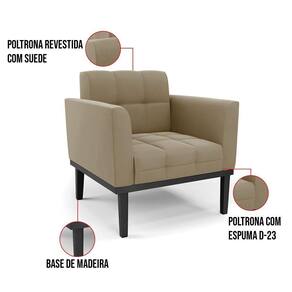Poltrona Base De Madeira Fixa Preto Elisa Suede D03 - D'rossi Cor Marrom Rato