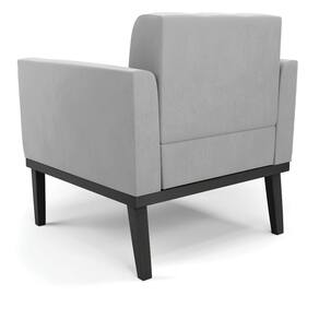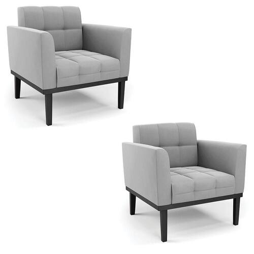 Poltrona Base De Madeira Fixa Preto Kit 2 Elisa Suede D03 - D'rossi Cor Cinza