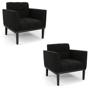 Você gosta de colecionar vários momentos memoráveis com sua família e amigos? Que tal recebê-los, com móveis de altíssima qualidade que só a D'Rossi tem? A Poltrona Elisa é adequada para você! Seu design retrô é a grande tendência do momento. Pode ser usada em diversos espaços da casa, em salas, hall de entrada, quartos, cozinhas, varanda, sacada, escritório, dentre outros. Contém as seguintes características: A estrutura é feita de madeira de Eucalipto 100% de reflorestamento, e a Base de Madeira Fixa Preto, além de ser resistente e durável, suporta em média até 120 kg. Assento, encosto e braços, contém enchimento de espuma D-23 e é estofada em tecido Suede no tom Preto, que oferece muito conforto e resistência ao sentar, com aquela sensação de maciez e aconchego. Possui também, detalhes de costura no encosto e assento, resultando em um acabamento impecável, conferindo muito mais valor e elegância ao seu espaço. Para complementar a decoração com essa linda poltrona, a dica é utilizar mantas, almofadas ou vasinho de flor. E pronto, seu cantinho estará perfeito para descansar e relaxar! Aqui, você encontra várias opções, para que seus amigos e familiares se sintam acolhidos. Garanta já sua Poltrona.